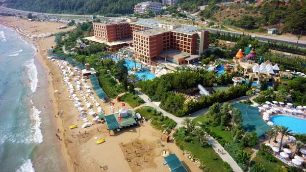 Törökország/Alanya. A hotelkomplexum közvetlenül a homokos tengerparton, az incekumi öbölben található. A tengerpart itt egyedülállóan finomhomokos, a tengervíz rendkívül tiszta. A szállodakomplexum 3 részből áll (Resort, Royal és Club), széleskörű szolgáltatásokat kínál, melyek minden igényt kielégítenek. Alanyába helyi buszokkal (dolmus) könnyen el lehet jutni. Főként gyermekes családok számára ajánljuk.