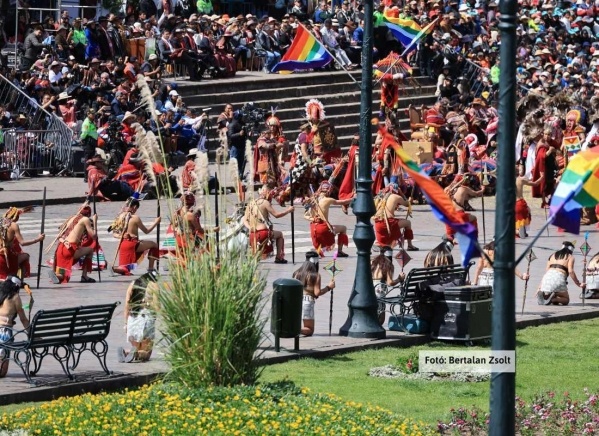 A főtéren szemtanúi lehetünk az Inti Raymihoz kaplcsolódó ünnepléseknek.
