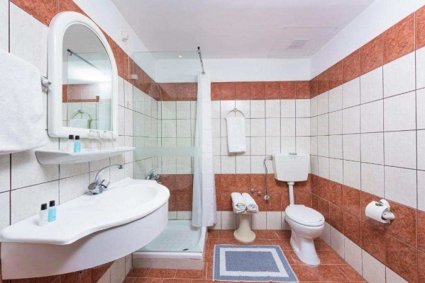Szobák: Kétágyas szépen berendezett szobái pótágyazhatóak, légkondicionálóval ,TV-vel, fürdőszobával, hajszárítóval felszereltek. Minden szobához erkély tartozik.