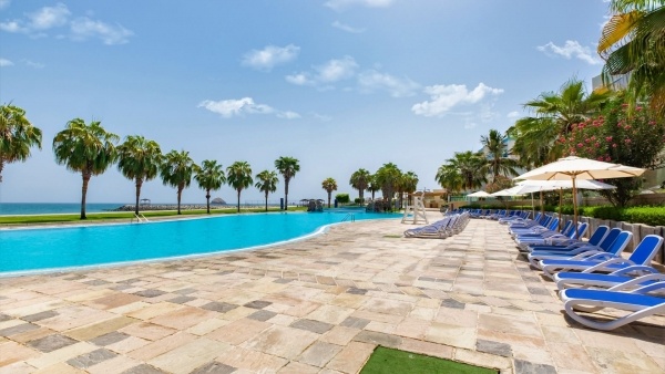 SZÁLLODA: ötcsillagos, 2007-ben épült, 2017-ben felújított, 257 szoba, főépület és több melléképület, akár 3 emelet, liftek, tágas és elegáns előcsarnok, 24 órás recepció, fő Breeze étterem terasszal - svédasztalos étkezés, konyha nemzetközi , 2 ? la carte étterem: Al Nokhada - indiai és arab konyha, Grand Bleu a tengerparton - szendvicsek, saláták, pizza, desszertek, 3 bár: The Lounge - a hallban, Grand Bleu - a Grand Bleu étterem mellett és úszás- fel bar ; olvasóterem, kisbolt; 2 konferenciaterem 80 főig, kert, parkoló; terasz kilátással a kertre és a strandra, ingyenes vezeték nélküli internet; felár: szobaszerviz, ügyeleti orvos, mosoda, autó- és kerékpárkölcsönzés (külső ajánlat); elfogadott hitelkártyák: MasterCard, Visa, American Express.