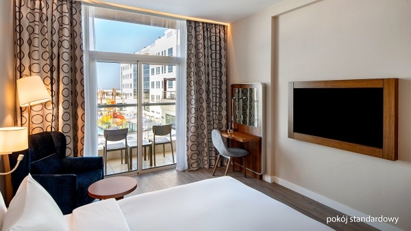 SZOBA: alapértelmezett: 2 személyes, kb. 31 m?, egyedileg szabályozható légkondicionáló, fürdőszoba (kád vagy zuhanyzó, wc; hajszárító, fürdőköpeny), vezeték nélküli Internet, TV, telefon, kávé/teás készlet, széf, minibár (fizetős); ingyenes kiságy 2 éves korig érkezés előtti megrendelésre; erkély (asztal és székek); tengerre néző kilátás felár ellenében; kiváló: 2 fős (12 éves korig gyermek részére pótágyazható), 38 m?, standard szoba berendezéssel; superior szoba felár ellenében.