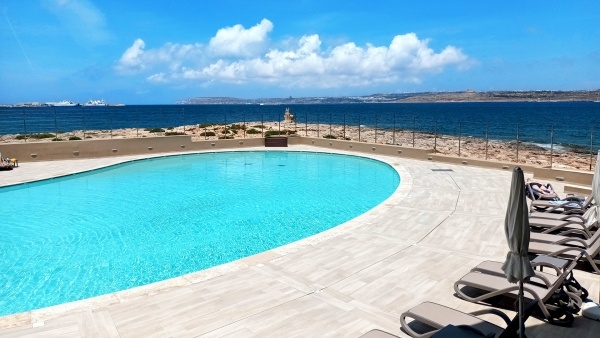 A 2018-ban felújított, modern és elegáns szálloda közvetlenül egy kisebb strand mellett fekszik, Málta északi részén, csendes, természeti szépségekben gazdag környezetben. A szálloda gyönyörű kilátást kínál Gozo és Comino szigeteire, ideális hely a nyugodt pihenéshez. Mellieha élénk turistaközpontja, számos üzlettel, bárral és étteremmel, mindössze kb. 5 km-re található. A közlekedés rendkívül kényelmes, mivel buszmegálló közvetlenül a szálloda előtt helyezkedik el. Valletta, a főváros, kb. 30 km-re, a repülőtér pedig körülbelül 27 km-re található.