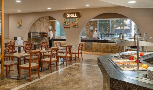 Ellátás: o Büféétterem Svédasztalos rendszerben fogyaszthatja el reggelijét, ebédjét vagy vacsoráját. A menü minden nap tartalmaz helyi és nemzetközileg ismert ételeket is. o Medencebár Kültéri, medenceparti bár, ahol napközben frissítőket, egyszerűbb ételeket, nassolnivalókat és különböző italokat fogyaszthat. Délben egy könnyű ebéd elfogyasztására is lehetősége van. Az All Inclusive ellátást választó vendégek korlátlanul fogyaszthatnak itt, viszont fejenként egyszerre csak egy ételt és egy italt kérhetnek. o Lounge bar A hotel előcsarnokábankerült berendezésre ez a hangulatos bár, ahol kényelmesen elfogyaszthatja kedvenc italát. Az All Inclusive ellátást választó vendégek korlátlanul fogyaszthatnak itt is, viszont amennyiben 23:00 óra után rendel és/vagy olyan italt, ami nem szerepel az All Inclusive listán, felárat számolnak fel. o Dress code: uraknak vacsoraidőben hosszú szárú nadrág és legalább rövid ujjú felsőruházat viselése kötelező.