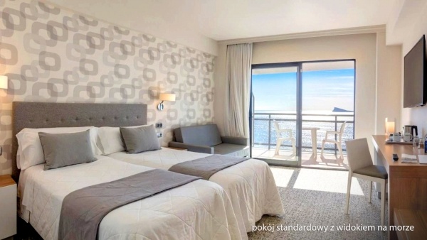 SZOBA: alapértelmezett: 2 személyes, kb. 20 m2, légkondicionált, fürdőszoba (kád vagy zuhanyzó, WC; hajszárító, kozmetikai készlet), vezeték nélküli internet, műholdas TV, telefon, kávé/teás készlet, kis hűtőszekrény, széf (kérésre); kiságy 2 éves korig érkezés előtti rendelésre (fizetendő: kb. 6,5 EUR/nap); erkély (asztal és székek), kilátás a környékre; tengerre néző kilátás felár ellenében; kiváló: 2 fős (2 pótágy lehetséges - kihúzható kanapé), kb. 26 m2, standard szoba berendezése; erkély (asztal és székek); superior szoba felár ellenében.