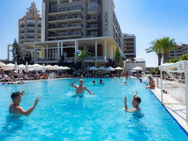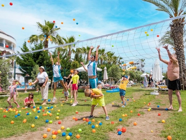 SZOLGÁLTATÁSOK: medencék napernyőkkel és napozóágyakkal o beltéri medence o vízicsúszdák o jacuzzi o főétterem o bárok (lobby, medence, strand) o cukrászda o nappali és esti animációs programok o esti showműsorok o élőzene o fitneszterem o asztalitenisz o darts o vízilabda o focipálya o strandröplabda o törökfürdő o szauna o gőzfürdő o wifi