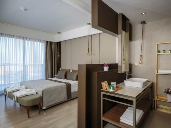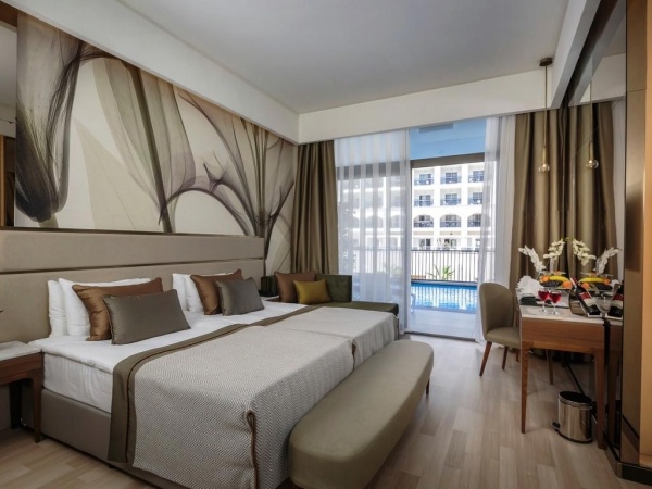 SZOBÁK: 362 szoba o erkély o légkondicionálás o hajszárító o telefon o TV o minibár (vízzel és üdítőkkel feltöltve) o kávé- és teakészítési lehetőség o vízforraló o széf térítés ellenében o papucs o wifi oStandard szobák: kb. 35 m?, max. 3 fő vagy 2 felnőtt + 2 gyermek részére, medencére néző vagy részleges tengerre néző kilátással o Swim-up szobák: kb. 35 m?, max. 3 fő részére, közvetlen medencekapcsolattal, csak 16 éven felüli vendégek számára o Családi szobák: kb. 55 m?, max. 5 fő részére, 2 hálószobával
