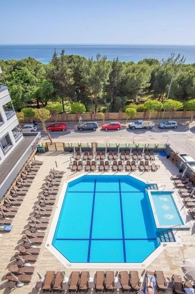 A teljesen felújított, 109 szobás szálloda egy ötemeletes épületből áll, és néhány lépésre található a Kleopátra strandtól, amelyet egy út választ el. A városközpont számos szórakozási lehetőséggel pár perc sétára található. A szállodában nincs animáció, azonban a vendégek rész vehetnek a 80 m-re fekvő testvérszálloda animációs programjain. Ebéd és vacsora szintén a testvérszállodában. Elsősorban a fiatalabb és szórakozni vágyó vendégeknek ajánljuk.