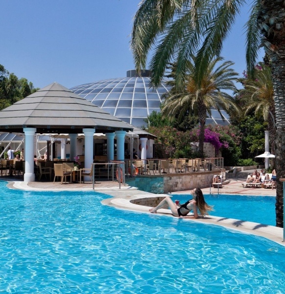 Az Ultra all inclusive ellátás tartalmazza: reggeli (7:00-10:00), ebéd (12:30-14:30) és vacsora (19:00-21:30) bőséges büfé formájában - Ambrosia étterem. Napközbeni snackek a Gallery Caféban (11:00 - 00:00) - gyros, pizza, hot dog, chips, szendvicsek, saláták, gyümölcsök stb. Prémium alkoholos italok; alkoholmentes és alkoholos, helyben készített italok (10:00-00:00 - Terrace Bar - csak italok; 19:00-00:00 Dome Club Bar) a szálloda által kijelölt helyeken és időpontokban. A szálloda az éttermekben formális öltözéket igényel (uraknak hosszú nadrág). Májustól októberig Family Club büfé étterem: meleg és hideg snack ételek, palacsinta és más desszertek.