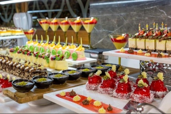 - Ultra all inclusive: reggeli, kései reggeli, ebéd és vacsora büférendszerben, délutáni és éjszakai snackek (00:00-07:00 között), diétás büfé, témaestek, gyermekbüfé a főétkezéseknél, gyermekétterem, sütemények, pizza, gofri, fagylalt (bizonyos időpontokban), török specialitások a török sátorban bizonyos helyi és néhány import alkoholos és alkoholmentes italok (napi 24 órában), minibár (üdítők, víz és sör; naponta feltöltve).