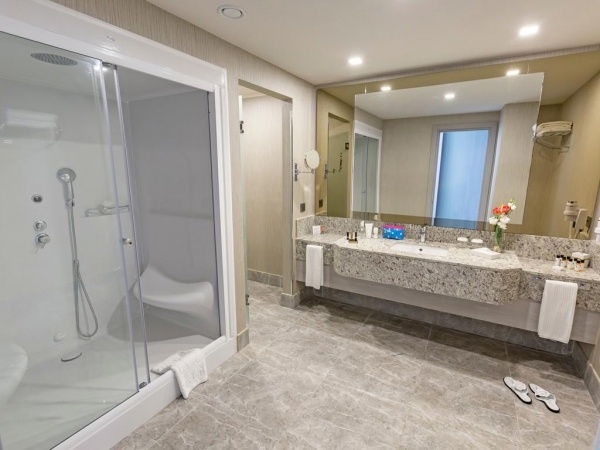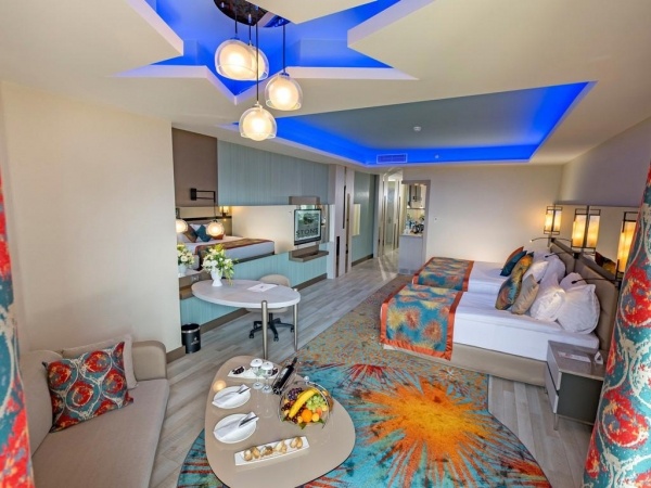 SZOBÁK: 793 szoba o erkély o központi légkondicionálás o hajszárító o telefon o TV o széf o minibár o vízforraló o kávé- és teakészlet o köntös térítés ellenében o wifio Superior standard szobák: 64 m?, max. 3+1 fő, kertre vagy tengerre néző kilátássalo Családi szobák: 80 m?, max. 4 fő, 2 hálószoba ajtóval elválasztva, kertre vagy tengerre néző kilátással o Családi duplex szobák: 120 m?, max. 4 fő, két szint (1 hálószoba földszinten, 1 hálószoba emeleten), 2 fürdőszoba, kertre vagy tengerre néző kilátássalo oJunior suite: 140 m?, max. 3+1 fő, 1 hálószoba és 1 nappali, jacuzzi o Deluxe suite: 170 m?, max. 2+1 fő, 1 hálószoba és 1 nappali, jacuzzi, kilátás a medencére vagy a kertre