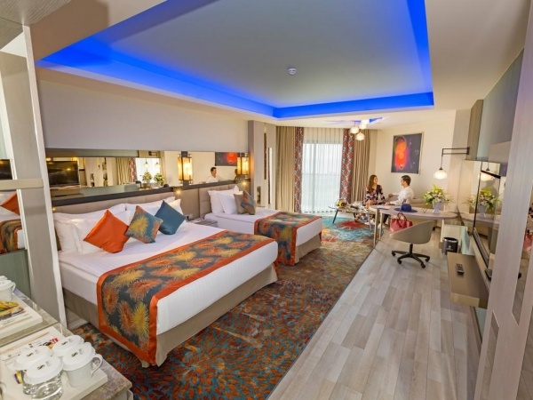 ELHELYEZKEDÉS: Lara o Antalya belvárosa kb. 17 km o Antalya repülőtér kb. 15 km o a szálloda kb. 70 000 m?-es területen helyezkedik el o a környező települések könnyen megközelíthetők helyi busszal (dolmus) vagy taxival o mozgáskorlátozottak számára kialakított szoba