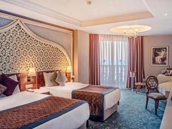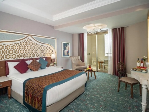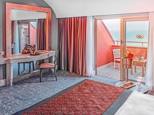 SZOBÁK: 515 szoba o erkély o központi légkondicionálás o hajszárító o telefon (térítés ellenében) o műholdas TV o minibár (naponta frissítve üdítőkkel és sörrel) o vízforraló o kávé- és teafőző készlet o széf o köntös térítés ellenében o wifio Superior standard szobák: kb. 52 m?, max. 3+1 fő részére, kilátással a tájra, a tengerre vagy oldalról tengerre néző kilátással o Junior suite: kb. 85 m?, max. 2+1 fő részére, 1 hálószoba és 1 nappali, jacuzzival o Családi szobák: kb. 77 m?, max. 4 fő részére, 2 hálószobával, kilátással a tájra o Duplex családi szobák: kb. 70 m?, max. 4 fő részére, földszinten 1 hálószoba + 1 fürdőszoba, emeleten 1 hálószoba + 1 fürdőszoba, kilátással a tájra o Taj Mahal családi szobák: kb. 77 m?, max. 4 fő részére, 2 hálószoba, jacuzzival