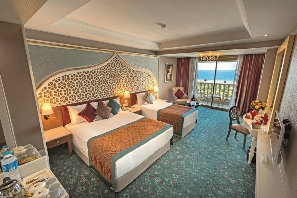 Fekvése: A 2015 nyarán nyílt, minden igényt kielégítő Royal Taj Mahal luxusszálloda az indiai Taj Mahal mintájára épült, közvetlenül a homokos, lassan mélyülő tengerparton. A hotel a törökországi antalyai nemzetközi repülőtértől kb. 50 km-re, Side városától kb. 5 km-re fekszik. Manavgattól kb. 12 km-re található.