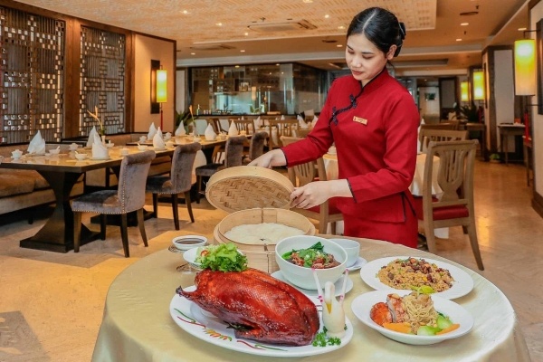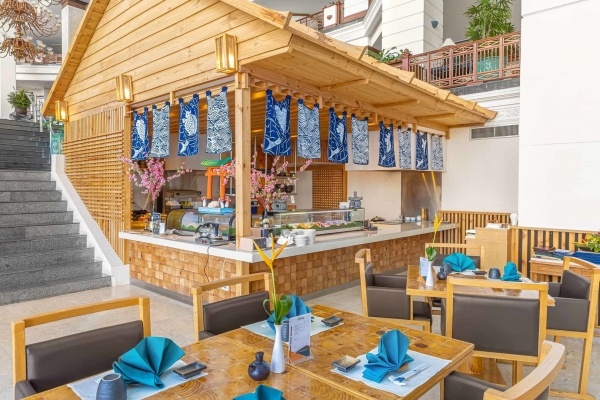 6 étterem a komplexumban: Panorama - svédasztalos és ? la carte fogások, nemzetközi és fusion konyha, Maharani - ? la carte, indiai konyha, Royal Grill borospincével - ? la carte, húsételek, tenger gyümölcsei, Breezeo a parton - ? la carte, thai konyha, tenger gyümölcsei, Huang Chao - ? la carte, kínai és kantoni konyha, Chamu - svédasztalos és ? la carte fogások, japán konyha