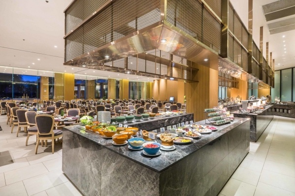 6 étterem a komplexumban: Panorama - svédasztalos és ? la carte fogások, nemzetközi és fusion konyha, Maharani - ? la carte, indiai konyha, Royal Grill borospincével - ? la carte, húsételek, tenger gyümölcsei, Breezeo a parton - ? la carte, thai konyha, tenger gyümölcsei, Huang Chao - ? la carte, kínai és kantoni konyha, Chamu - svédasztalos és ? la carte fogások, japán konyha