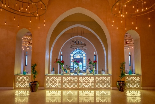 A fényűző 422 szobás luxusszálloda a repülőtértől 35 kilométerre, a festői Indiai Óceán partján helyezkedik el. A többhektáros területen fekvő modern szállodakomplexumot több épületből egy mesterséges lagúnarendszerben alakították ki megőrizve a hagyományos arab építészetet és sítust.