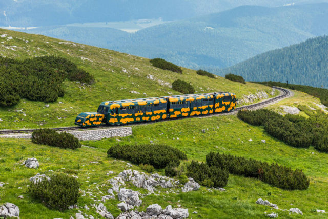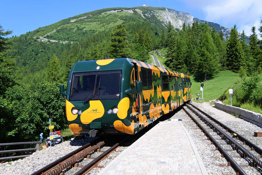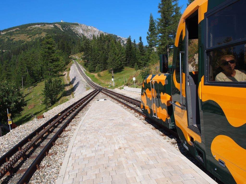 A vasút 1800 méter magasságig visz minket, a közel 10 kilométeres utat megközelítőleg egy óra alatt teszi meg. Az út során friss, élénk zöld legelőket, sűrű lombos erdőket, ritka alpesi növényzettel borított tájak sokaságát érintjük. A lélegzetelállító kilátás, a friss levegő és a természet páratlan szépsége életre szóló élményeket garantál, nem is beszélve az időközben készíthető temérdek gyönyörű fotóról. Utunk során több rövidebb megállót is tartunk, és mielőtt nekilendünénk a leghosszabb kaptatónak, lesz lehetőségünk megízlelni a méltán híres schneebergi pékremeket, a buktát többféle ízben.