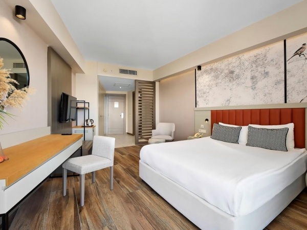 SZOBÁK: 460 szoba o erkély o egyéni légkondicionálás o hajszárító o telefon (térítés ellenében) o TV o széf o minibár (érkezéskor víz, üdítő és sör, naponta vízzel feltöltve) o vízforraló o kávé- és teafőző szett o Economy szoba: 28 m?, max. 2 fő, francia erkély, kertre néző o Standard szoba: 28 m?, max. 3 fő, kilátás tengerre, kertre vagy oldalról tengerre o Standard Comfort szoba: 28 m?, max. 3 fő, tengerre néző o Családi szoba: 48 m?, max. 4 fő, 2 különálló szoba, kertre vagy tengerre néző oNagy családi szoba: 64 m?, max. 6 fő, 3 különálló szoba, kertre néző