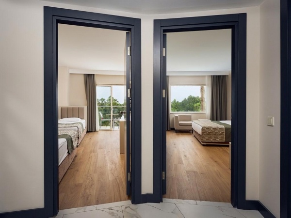 SZOBÁK: 674 szoba o erkély o egyéni légkondicionálás o hajszárító o telefon (térítés ellenében) o TV o széf o minibár (érkezéskor víz, üdítők és sör, naponta vízzel feltöltve) o vízforraló o kávé- és teafőző szett o wifi o Economy szoba: 30 m?, max. 2 fő, francia erkély, kertre néző o Standard szoba: 30 m?, max. 3 fő, kilátás tengerre, kertre vagy oldalról tengerre o Standard Comfort szoba: 30 m?, max. 3 fő, tengerre néző o Standard Child Friendly szoba: 30 m?, max. 2+2 fő, kertre néző o Családi szoba: 50 m?, max. 4 fő, 2 különálló szoba o Grand Suite: 80 m?, max. 2 fő, jakuzzival