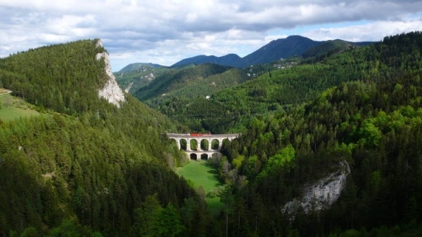 Egy határ közeli rövid pihenő után érkezünk Gloggnitz városába, ahol felszállunk az UNESCO Világörökség részét képező híres semmeringi vasútra. A körülbelül 45 perces utazás során lenyűgöző élményekben lesz részünk. A vasútvonal hossza összesen 41 km; 14 alagút, 11 vashíd, több mint 100 kőhíd és 16 viadukt színesíti ezt a lélegzetelállító pályát. Kicsiknek és nagyoknak egyaránt emlékezetes élmény az Alpok meseszép hegyvonulatai között utazni.