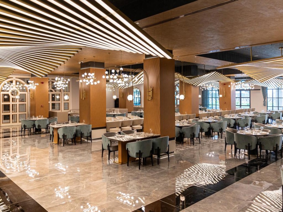SZOLGÁLTATÁSOK: medencék napernyőkkel és napozóágyakkal • relaxációs medence felnőtteknek • beltéri medence • vízicsúszdák • főétterem • bárok (lobby, medence, tengerpart) • cukrászda • nappali és esti animációs programok • esti showműsor • élőzene • fitneszterem • asztalitenisz • darts • mini foci • strandröplabda • törökfürdő • gőzfürdő • szauna • wifi