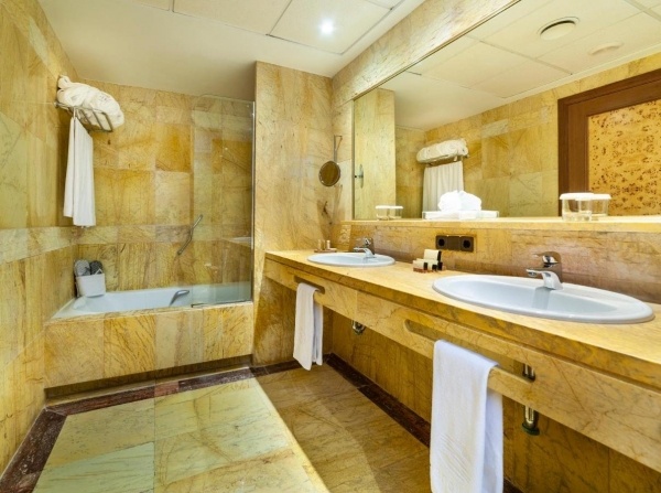 Kétágyas szobák (standard/medencére néző/tengerre néző): 41 m?. A szobákhoz tartozik külön légkondicionáló és fűtés, TV, WiFi, széf, terasz napozóágyakkal és asztallal, hajszárító, köntös és papucs, minibar (EUR), kávégép (EUR), illetve párna menü is.