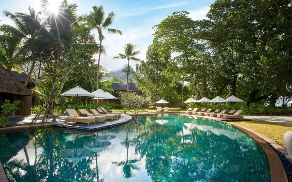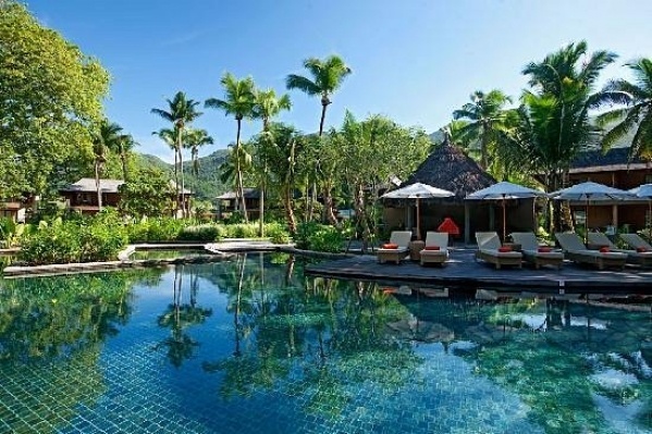 A természettel szinte egybeolvadó hotelkomplexum Mahé nyugati partján, a nemzetközi repülőtértől 40 percre.