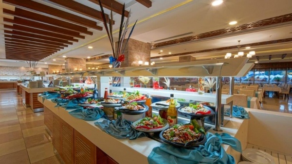 - Ultra All inclusive: Reggeli, kései reggeli, ebéd és vacsora büférendszerben, késői reggeli, napközbeni snackek, kései vacsora minibüfé (21:00-23:00), éjféli leves (23:00-24:00), éjszakai a'la carte (00:00-07:00 között), diétás ételek, kávé/tea/sütemények, gözleme, gofri és fagylalt (bizonyos időpontban), helyi és néhány import alkoholos és alkoholmentes italok (napi 24 órában), naponta üdítők és víz a minibárból, 2 a'la carte étterem (török és hal; tartózkodás során egy alkalommal, előzetes foglalással).