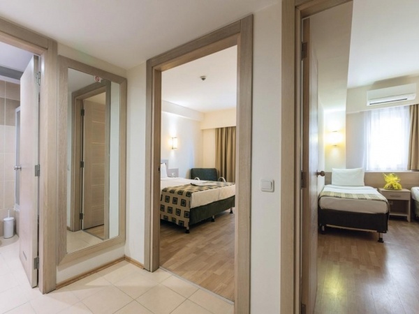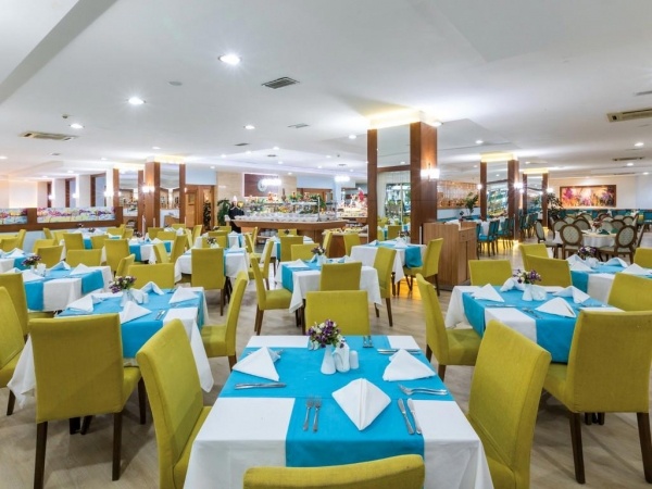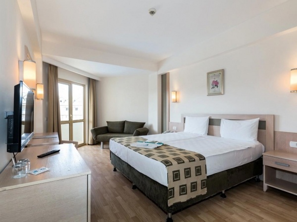 ELHELYEZKEDÉS: Evrenseki o Manavgat kb. 10 km o Antalya repülőtér kb. 55 km o a szálloda egy kb. 10.600 m?-es területen helyezkedik el o a közeli városok könnyen elérhetők busszal vagy taxival o mozgáskorlátozottak számára kialakított szoba