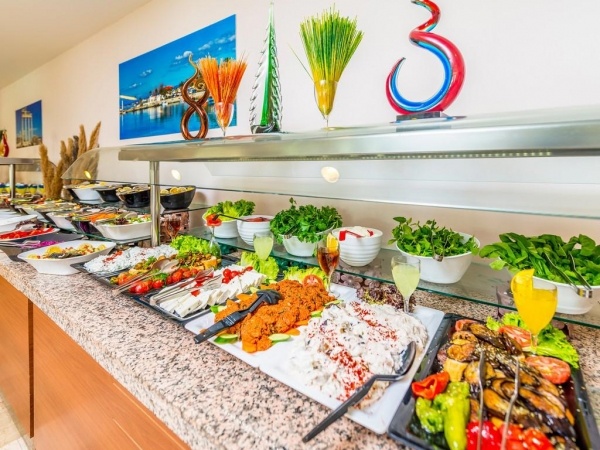 ELLÁTÁS: All inclusive o Reggeli, ebéd és vacsora büfé formában o Késői reggeli o Snackek o Gözleme o Kávé, tea és sütemények o Helyi alkoholos és alkoholmentes italok o Minibár