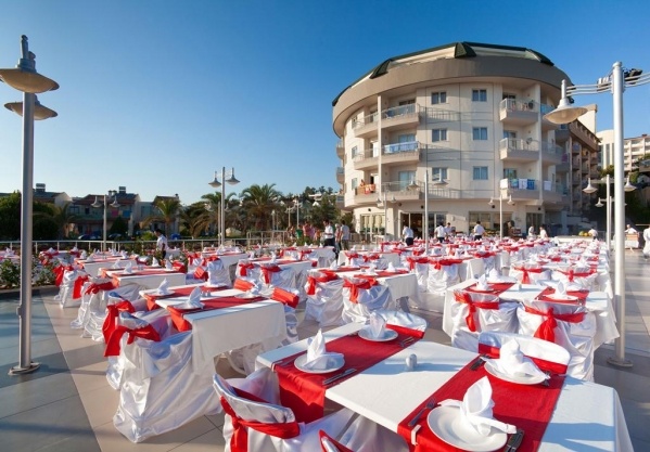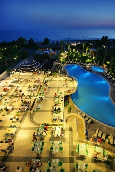 ELHELYEZKEDÉS: Side kb. 5 km o Manavgat kb. 9 km o Antalya repülőtere kb. 65 km o a hotel kb. 9 000 m?-es területen fekszik o a közeli városok könnyen elérhetők helyi busszal (dolmus) vagy taxival.