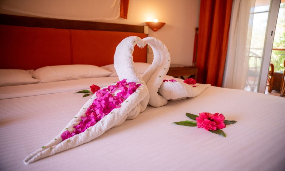 SZOBÁK: A BUNGALOW szobák (kb. 16 m²) a szálloda területének jobb és bal oldalán lévő 19 egyemeletes melléképületekben helyezkednek el, és kertre néző erkéllyel vagy terasszal kialakítottak. Minden szoba fürdőkáddal, WC -vel, légkondicionálóval (szezonális), telefonnal, széffel, műholdas TV -vel, mini hűtőszekrénnyel, hajszárítóval és részben balkonnal/terasszal vagy francia erkéllyel rendelkezik. Maximum 2 fő részére foglalhatók. A DELUXE szobák (kb. 19 m²) szintén a 19 egyemeletes melléképületek valamelyikében találhatóak, ugyanaz a felszereltségük, mint a bungalow szobáké, azonban valamivel nagyobbak és a strandhoz közelebb helyezkednek el. Maximum 2 felnőtt elhelyezésére alkalmasak. A JUNIOR SUITE szobák (kb. 22 m²) a főépületben találhatók, egy részük tengerre néző kilátással rendelkezik. Az igényes felszereltséghez fürdőkád, WC, légkondícionáló, telefon, széf, műholdas TV, hajszárító, mini hűtőszekrény, ülősarok és egy bútorokkal berendezett erkély tartozik. Maximum 3 felnőtt, vagy 2 felnőtt és 2 gyerek részére ajánlottak. Amennyiben 2 felnőtt és 1-2 gyerek, vagy 3 felnőtt veszi igénybe a szobát, akkor azt pótágyazzák. SUPERIOR JUNIOR SUITE (kb. 40 m²) szobák azonos felszereltséggel rendelkeznek, mint a sima junior suite szobák, részben felújítottak, és mindegyik a földszinten helyzkedik el, max. 2 főre foglalhatók. A GRAND SUITE típusú szobák (kb. 80 m²) egy hálószobából, valamint nappaliból állnak - minden esetben ajtóval elválasztva- , egy fürdőszobával, és két balkonnal rendelkeznek (jelenleg felújítás alatt vannak). A CSALÁDI SZOBÁK (kb. 32 m²) szintén a főépületben találhatóak, és két hálószobával rendelkeznek, mindkét hálószoba külön ajtóval van elválasztva. Maximum 2 felnőtt és 3 gyerek vagy 3 felnőtt és 1 gyerek elhelyezésére alkalmasak.