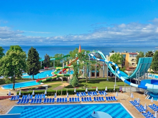 SZOLGÁLTATÁSOK: kültéri medencék napernyőkkel és nyugágyakkal o beltéri medence o aquapark o csúszdák o napozóterasz o főétterem o medencebár o lobby bár o nappali és esti animációs programok o fitnesz o vízi torna, jóga, zumba o multifunkciós sportpálya o foci o röplabda o kosárlabda o asztalitenisz o wifi