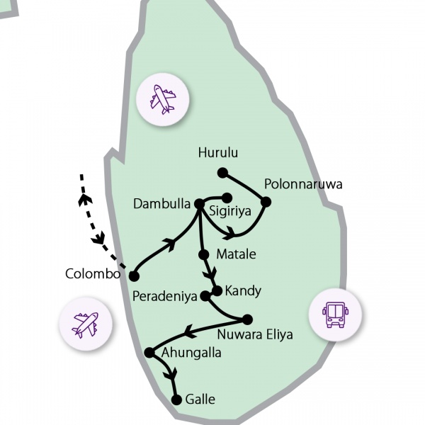 Érkezés Colombóba a reggeli órákban, ahonnan már indulunk is a szigetország felfedezésére. Első megállónk a Dambullában található sziklatemplom, melynek lenyűgöző termeiben egyedülálló falfestményeket és több mint százötven különböző Buddha szobrot figyelhetünk meg. Az öt sziklabarlangból álló különleges templom Sri Lanka egyik legszebb buddhista temploma. A barlangtemplom bejáratánál találjuk az Arany Templomot, felette egy hatalmas, aranyban ragyogó Buddha-szobor, ami óriásként magasodik a tájban. Este vacsora a szállodában.