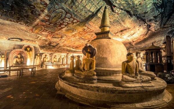 2.nap: Érkezés Srí Lankára a reggeli órákban, majd utazás az ország belseje felé. Az út mentén változatos kép tárul elénk - rizsföldek, kókuszligetek, ananászkertek, gumifa ültetvények és falvak sorakoznak. Helyenként sűrű gyalogos forgalmat, színes forgatagot tapasztalunk az országutak mentén - a Srí Lanka-i lakosság nagyrésze falvakban él. A mai úti cél Dambulla sziklába vájt kolostora, mely a Világörökség része. A kőszobrokkal, festményekkel gazdagon díszített szentélyek a buddhista kultúra különböző korszakainak jellegzetes örökségei. A dombtetőre vezető lépcsősoron majmok hada próbál ismeretséget kötni a látogatóval. Mi tartsunk tőlük biztonságos távolságot és csak szemléljük, ahogy jó étággyal lakmároznak a zarándokok által felhalmozott lótuszvirágokból. Utazás fáradalmainak kipihenése, vacsora és szállás Dambulla-ban