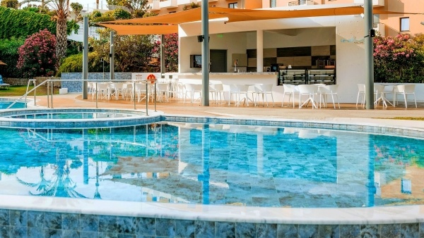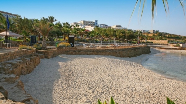 A szálloda közvetlen közelében található nyilvános, homokos-kavicsos strand enyhén lejt a tenger felé, ezért kényelmesen megközelíthető és ideális a fürdőzéshez. A part megközelítése a szálloda területén keresztül lehetséges, védőcipő viselése ajánlott. A vendégek számára napernyők, napozóágyak és matracok térítésmentesen állnak rendelkezésre, előzetes foglalás mellett, a strandtörölközők letét ellenében igényelhetők. Emellett a közelben egy másik, Kék Zászló minősítéssel rendelkező, homokos strand is található, ahol a napernyők és napozóágyak díj ellenében vehetők igénybe.