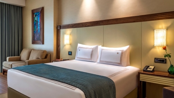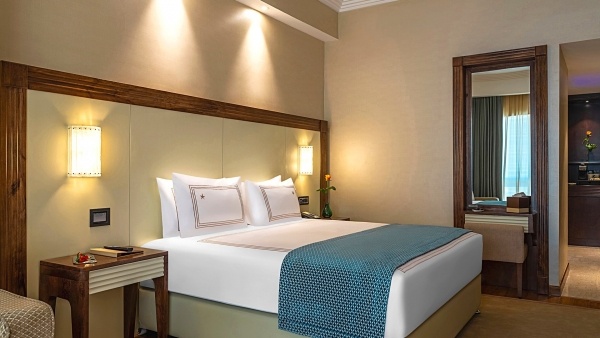 SZOBA: luxus: 2 fő (1 pótágy lehetséges), kb. 40 m?, egyénileg szabályozható légkondicionáló, fürdőszoba (kád vagy zuhanyzó, WC; hajszárító, fürdőköpeny), vezeték nélküli internet, műholdas TV, telefon, kávé/teás készlet, széf, vasalódeszka, minibár (fogyasztás szerint fizetendő); 2 éves korig ingyenes kiságy érkezés előtt.