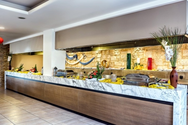- All Inclusive: minden étkezés büférendszerben, reggelinél szűrt kávé, tea és víz, ebédnél és vacsoránál üdítők, sör és bor, grillételek 12:30 és 14:30 óra között, a snack-bárban 11:00 és 18:30 óra között palacsinta, gofri, sütemények, fagyasztott joghurt, fagylalt és italok, a lobby-bárban 10:00 és 23:00 óra között 10:00 és 23:00 üdítők, sör, bor és helyi alkoholos italok, valamint filteres kávé és tea, a pool-bárokban 10:00 és 23:00 óra között üdítők, sör, bor és helyi alkoholos italok, valamint filteres kávé, tea és könnyű snack-ételek 10:00 és 18:00 óra között, vacsora az a'l carte-éttermekben 19:00 és 21:30 óra között (görög, ázsiai, olasz, vacsora, tartózkodásonként 1x ingyenesen, előzetes foglalással). Az All Inclusive szállodák szolgáltatásai bizonyos részletekben szállodánként eltérhetnek.