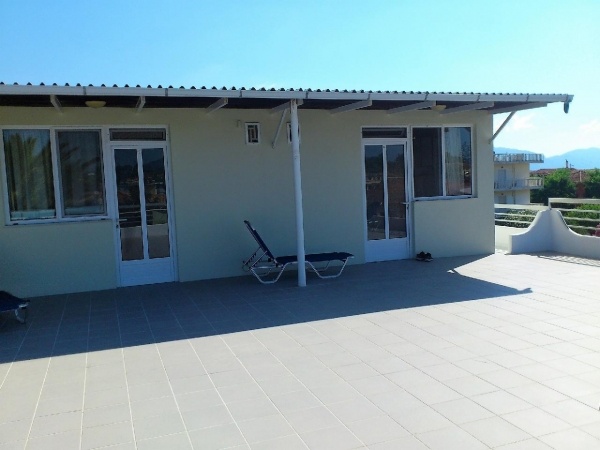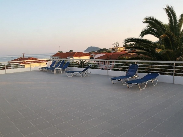 Az apartmanház Laganas csendes részén található, 50 méterre a homokos tengerparttól. A közelben számos étterem, bár, üzlet, Laganas központja kb. 5 perces sétával elérhető. A ház különlegessége az óriási, közös, tetőtéri terasz, ahonnan csodálatos kilátás nyílik a Jón-tengerre.