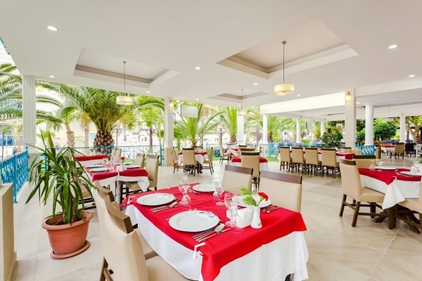 - All Inclusive: minden étkezés büférendszerben, reggeli későn kelőknek 10:00 és 10:30 óra között, napközben snack-ételek, tea, kávé, helyi alkoholos és alkoholmentes italok 10:00 és 24:00 óra között, éjféli snack-ételek 23:00 és 24:00 óra között, fagylalt 12:30-14:00 óra és 19:00-21:00 óra között, cukrászda 10:00 és 17:00 óra között, ebéd/snack-ételek a strandbárban 12:00 és 16:00 óra között, italok a strandon 10:00 és 18:00 óra között.