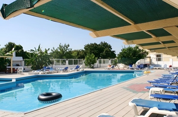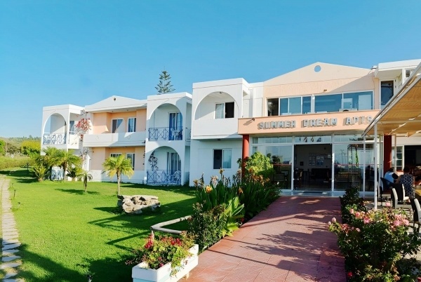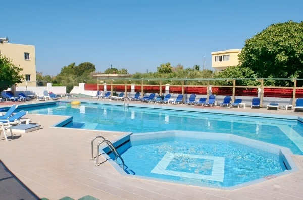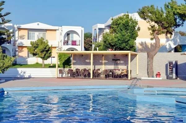 A több épületből álló, görög stílusú komplexum, a tengerpart közelében, Theologos üdülőhelyen, Rodosz fővárosától kb. 20 km-re, a Pillangók völgyétől pedig 6 km-re fekszik. Kb. 250 méterre található egy buszmegálló, ahonnan eljuthatunk a fővárosba. A közelben szupermarket és további vásárlási lehetőségek találhatók.
