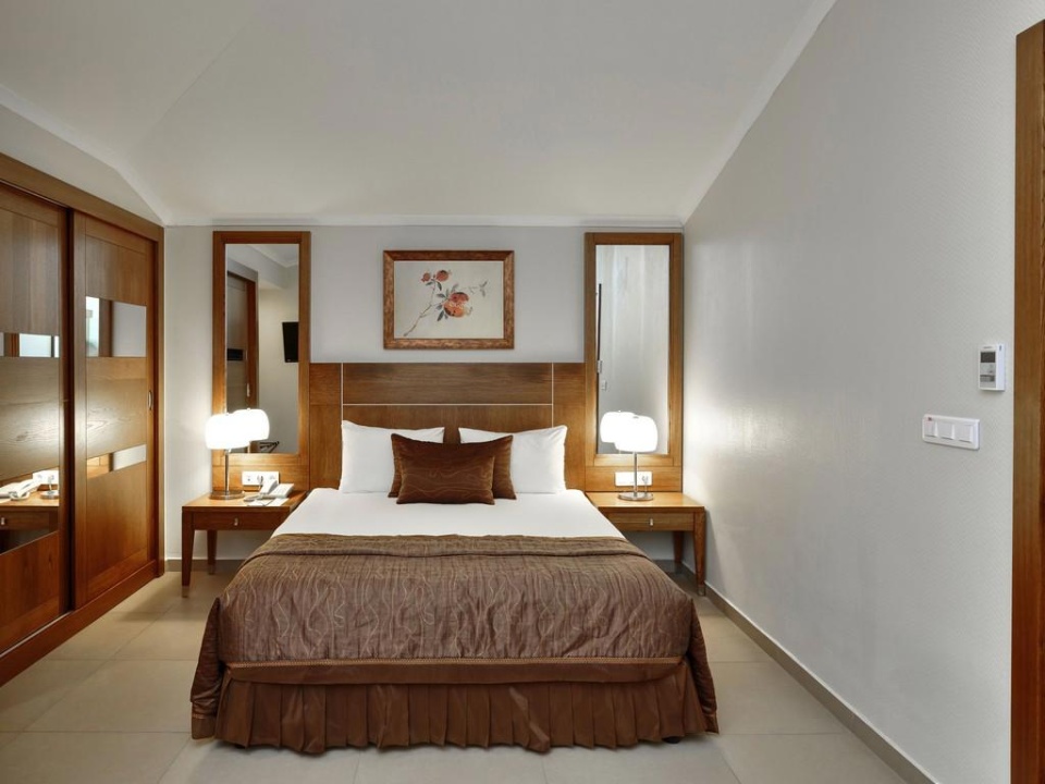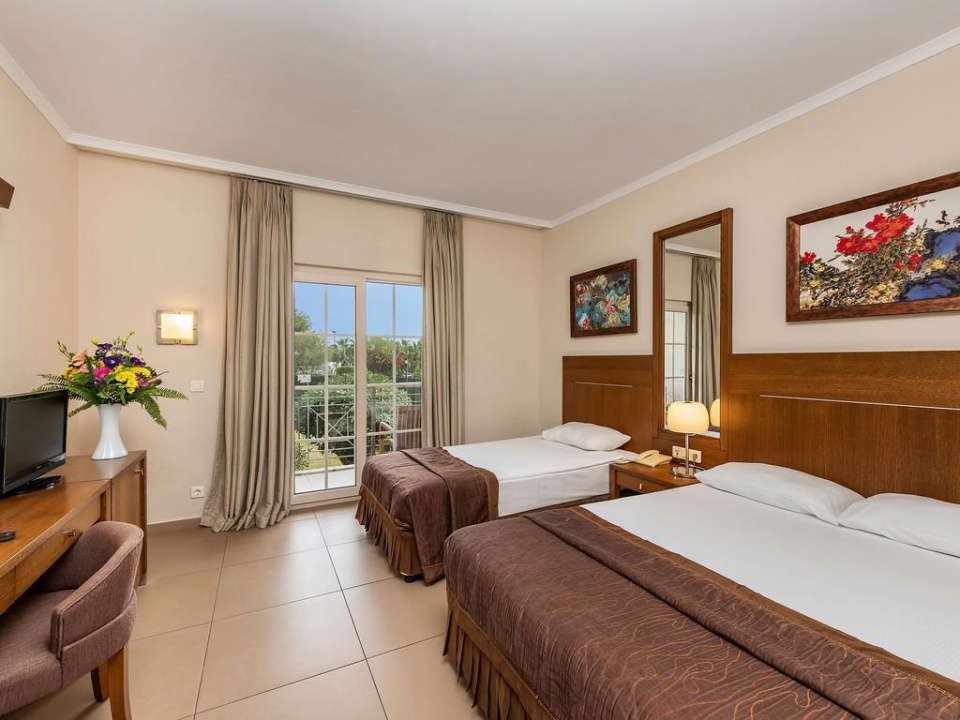 SZOBÁK: 583 szoba • Erkély • Központi légkondicionálás • Hajszárító • Telefon (térítés ellenében) SAT TV • Minibár • Elektronikus széf • Wifi • Standard szobák: kb. 24 m², max. 3 fő részére, kertre, tájra vagy tengerre néző kilátással, néhány szoba melléképületben • Standard szobák emeletes ággyal: kb. 24 m², max. 2+2 fő, tájra néző kilátással • Club családi szobák: kb. 28–39 m², max. 3+2 vagy 4+1 fő, 2 hálószoba ajtóval elválasztva, kertre néző kilátással