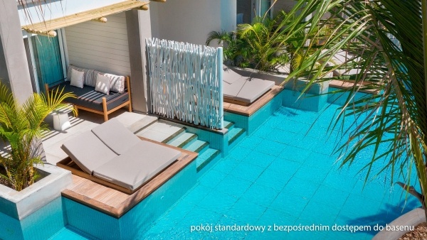 A medencére néző standard szobák közvetlen kijárattal szintén kb. 31 m?-esek, hasonló felszereltséggel, azonban erkélyük vagy teraszuk közvetlen hozzáférést biztosít a több szobával közös medencéhez, így különleges élményt kínálnak.