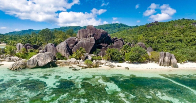 Ma La Digue szigetére utazunk. Rövid kompozás után helyi járművekkel felfedezzük a sziget szépségeit. Megismerkedünk az egykori kókuszpálma és vaníliaültetvény, az Union Estate park látnivalóival: a kókuszdió feldolgozásának és a kókuszolaj préselésének folyamatával ismerkedünk, megtekintünk egy 19. századi francia koloniális épületet, találkozunk óriásteknősökkel, majd egy vaníliaültetvényen átsétálva a felejthetetlen szépségű Anse Source d’Argent parton találjuk magunkat. A gránitsziklákkal tarkított fehérhomokos tengerpart a világ egyik legszebbje. Rövid szabadidő, lehetőség a fürdésre, kajakozásra (felár ellenében) a mesés parton. Délután visszautazás komppal Praslin szigetére.