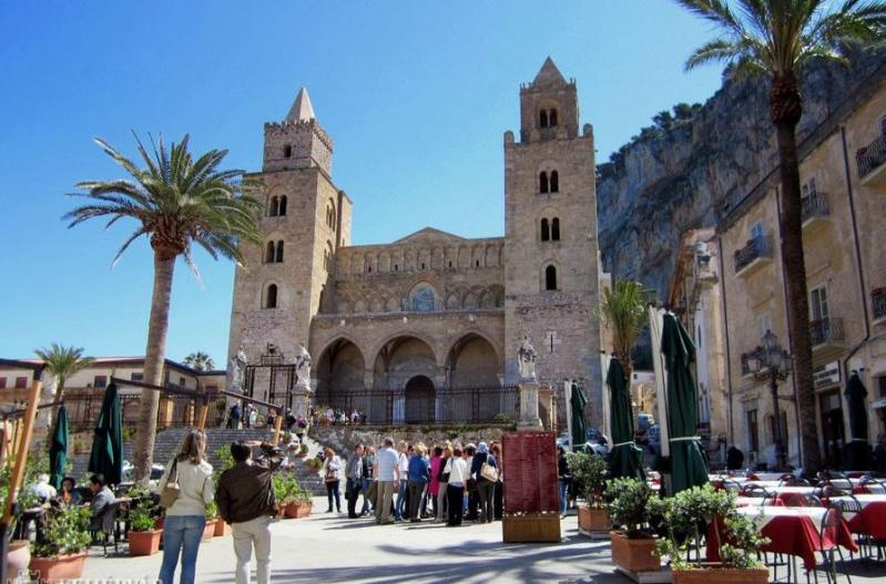 Délelőtt utazás Cefalúba, séta a kisvárosban, mely egy hatalmas sziklatömb tövében fekszik a tengerparton (hangulatos, középkori városközpont, erődszerű normann-kori bazilika). Ezután látogatás a Palermo melletti Monrealéban, a világhírű XII. századi dóm megtekintése (gyönyörű mozaikok). Délután városnézés Palermóban, Szicília fővárosában: Székesegyház, Normann Palota, Palatinus-kápolna stb.