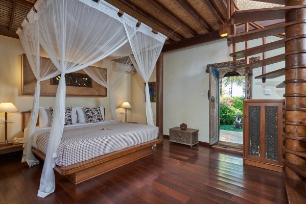 A tengerparti bungalók körülbelül 55 m?-esek, két fő számára kínálnak kényelmes, hangulatos elhelyezést. A légkondicionált szobákhoz félnyitott fürdőszoba tartozik zuhanyzóval, WC-vel és hajszárítóval, ami még közelebb hozza a természet nyugodt atmoszféráját. A felszereltség része a vezeték nélküli internet, a televízió, a telefon és a kávé-/tea-készlet, így minden adott a kellemes pihenéshez. A saját terasz asztallal és székekkel a tengerre nyújt lenyűgöző kilátást, tökéletes helyet biztosítva a nap indításához vagy egy esti kikapcsolódáshoz. Térítés ellenében széf és minibár is rendelkezésre áll, fogyasztás szerint.