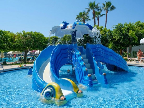 SZOLGÁLTATÁSOK: medence napernyőkkel és napágyakkal o csúszdák o beltéri medence o főétterem o bárok (lobby, medence, strand) o könnyed animációs programok o fitneszterem o aerobik o vízi torna o strandröplabda o boccia o darts o asztalitenisz o TV-sarok o törökfürdő o szauna o gőzfürdő o wifi