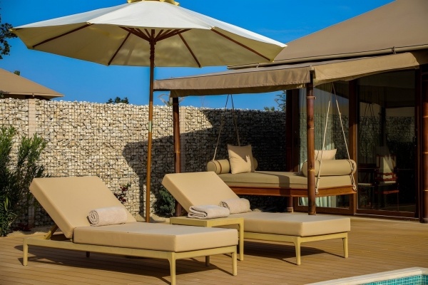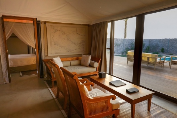 SZOBA: sátor: 2 fős, kb. 50 m2, légkondicionált, fürdőszoba (kád vagy zuhany, wc; kozmetikai készlet), vezeték nélküli internet, televízió, széf, kávéfőző, kávé/tea készlet; felár ellenében: minibár (fogyasztás szerint); terasz (asztal és székek); sátor saját medencével felár ellenében.