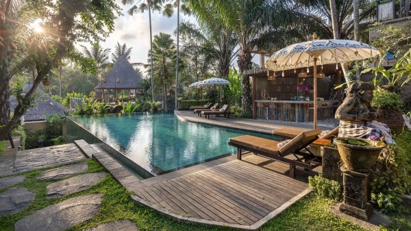 A szálloda Ubud központjától körülbelül 4 km-re fekszik, így könnyen elérhetők a város kulturális és gasztronómiai látnivalói, miközben a környék nyugalma is megmarad. Éttermek, bárok és boltok nagyjából 1 km-re találhatók, Denpasar mintegy 20 km-re, Kuta pedig körülbelül 28 km-re helyezkedik el. A denpasari repülőtér hozzávetőleg 34 km távolságra található. A vendégek kényelmét ingyenes szállodai busz biztosítja Ubud központjába, amely 9.00 és 22.00 között közlekedik, a pontos menetrendet és a járatok gyakoriságát pedig a szálloda határozza meg.
