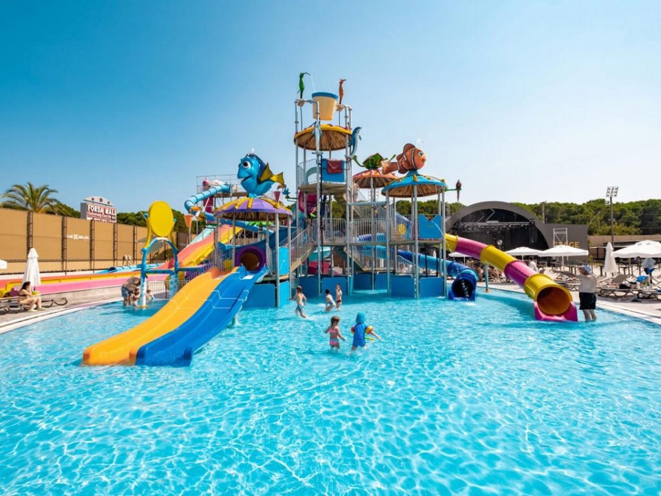 SZOLGÁLTATÁSOK: medencék napernyőkkel és napágyakkal • kizárólag felnőttek számára fenntartott medence • beltéri medence • csúszdák • főétterem • bárok (lobby, medence, strand stb.) • cukrászda • animációs programok • esti show-műsorok • élőzene • diszkó • fitneszterem • darts • boccia • asztalitenisz • vízilabda • pilates • jóga • vízi torna • aerobik • zumba • szauna • törökfürdő • gőzfürdő